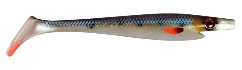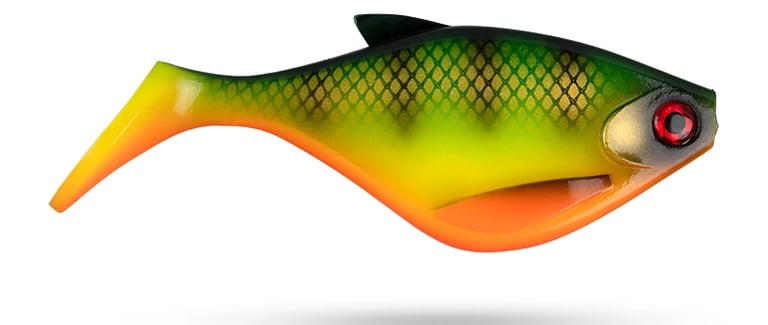 Soft lures of the "shad" type are fish-shaped, often with a paddle tail or a thinner, twist-type tail. These tail types create a characteristic vibration when retrieved. Shads are very popular for targeting pike because they perfectly imitate baitfish such as roach or perch.
